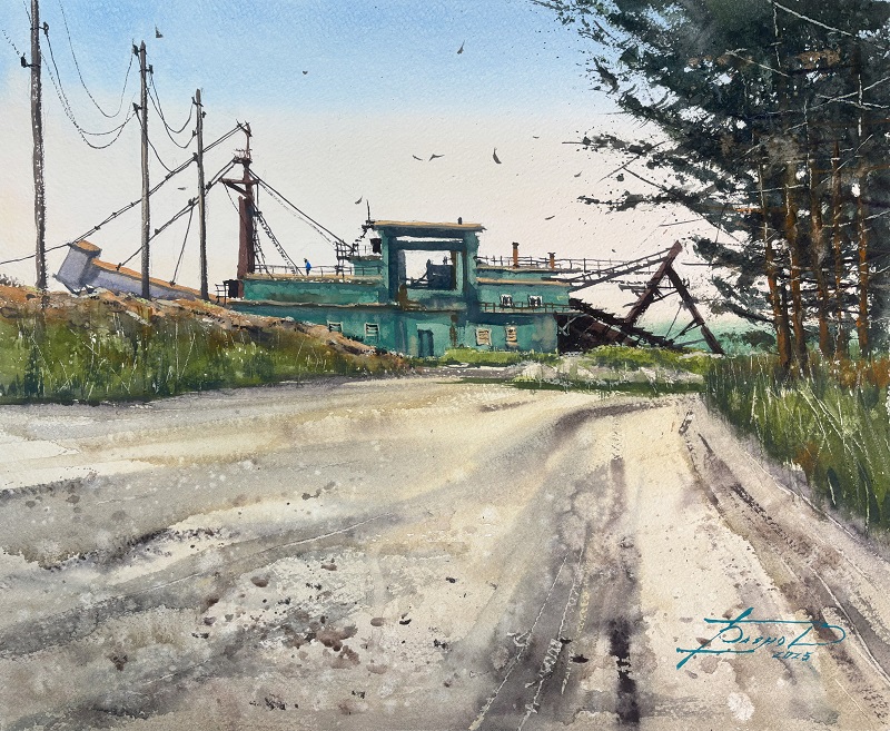 Город Березовский известен как родина уральского и российского золота. Шахта Центральная, Шахта Северная, драга и механизмы карьеров – прекрасная натура для моего творчества. Так и родилась эта серия работ, объединенная такой сильной исторической темой.