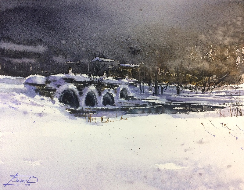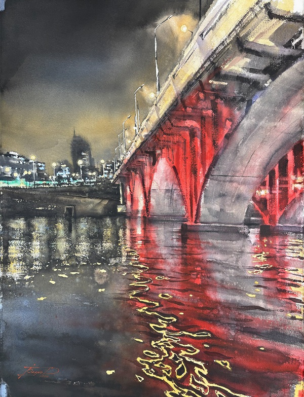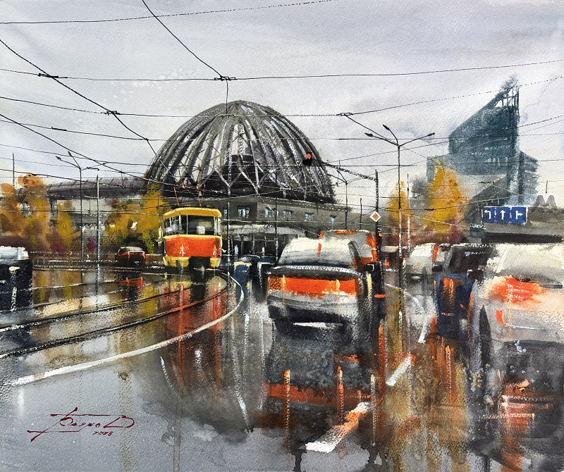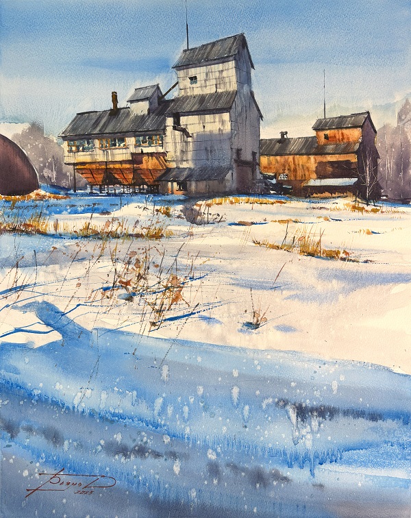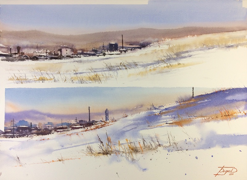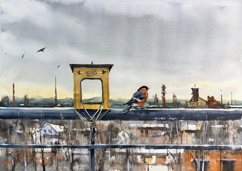 С акварелью профессионально я познакомился в 2013 году. Это неповторимый материал, который отличает эту технику живописи от других. Я обожаю взаимодействие воды и красок, люблю эффекты, которые создает вода, люблю разные сорта бумаги и красок, люблю её скорость, легкое волнение перед началом работы над картиной. Всё это соединяется с моей любовью к архитектуре, к индустриальным сюжетам, к природе. Так получаются мои работы, и я рад, что зрители их узнают.