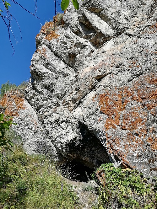 Также находится на левом берегу, на некотором отдалении от воды. Название получила по небольшой пещерке, глубиной около 3 м, похожей на нору. В нее можно забраться только нагнувшись (не в полный рост).