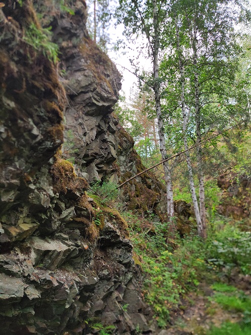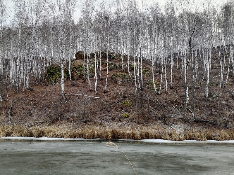 Живописные осыпи, протянувшиеся вдоль реки, примерно на 200 м на некотором отдалении от воды, у западной окраины д. Чайкина.