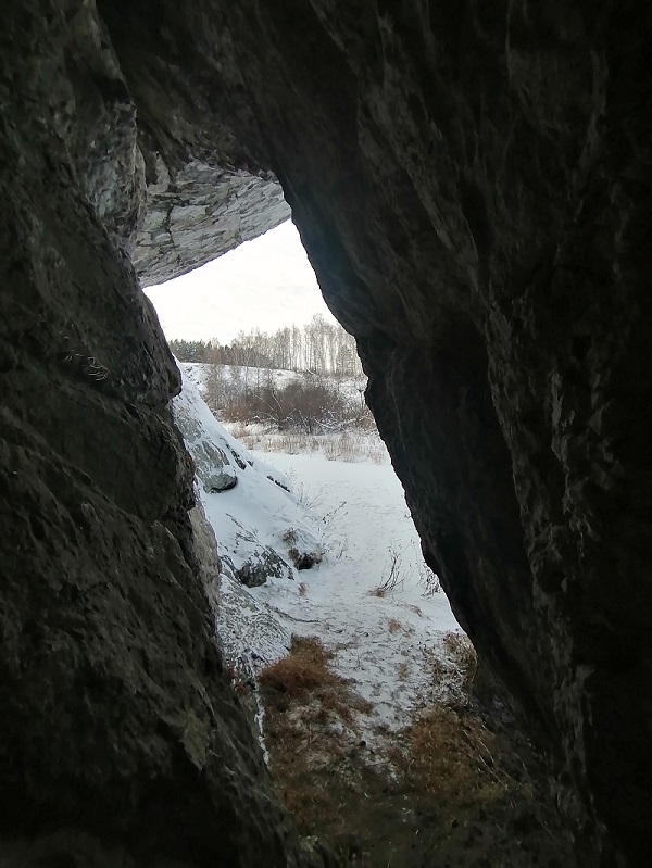 Если отмерить расстояние по реке от крайней улицы с. Зотино до скалы с пещерой, то выходит около 3,5 км. Далее по левому берегу до скалы Кривулина (за д. Колпакова) никаких значительных скальных выходов нет, и также нет городищ. Поэтому, учитывая все вышесказанное (в т.ч. вход в пещеру с верхней площадки) мы можем с большой уверенностью утверждать, что речь идет именно о скале, в которой находится Зотинская пещера.