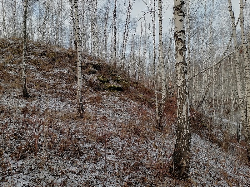 Северный склон гребня, обращённый к деревне и к Багаряку, спускается к воде небольшими уступами.