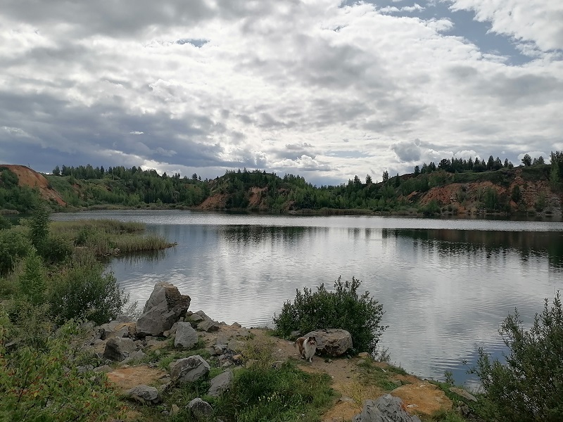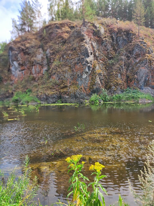 Отработанный карьер, нижняя часть которого заполнилась грунтовыми водами и представляет собой живописное озеро. Местное название затопленной части карьера — «забой». Разработка карьера началась со скалы, стоявшей на берегу реки, и связана она была со строительством Уральского алюминиевого завода (г. Каменск-Уральский), в 1930-е г.г.