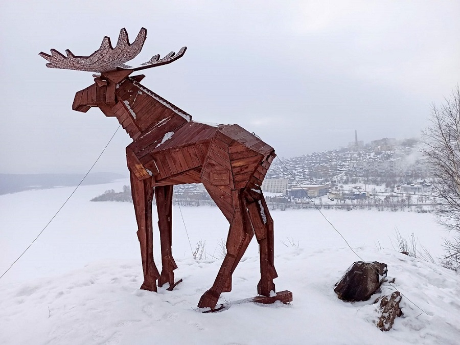 Вершину горы Косотур украшает эффектный арт-объект «Сохатый Великан» объект в виде лося, который смастерила команда «Арт-экспедиция 1406».
