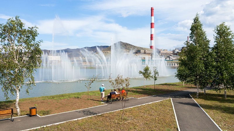 Теперь вдоль берега городского пруда расположена зона для прогулок и отдыха со скамейками и зеленью. А на глади водоёма установлен светомузыкальный фонтан, который стал отличным подарком для жителей и гостей Карабаша к 200-летию города.