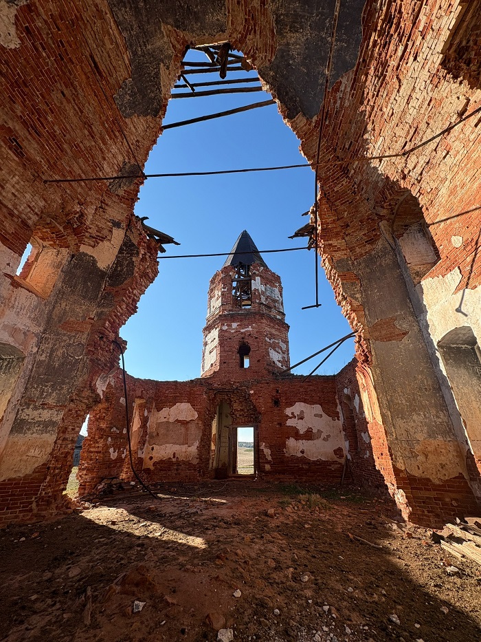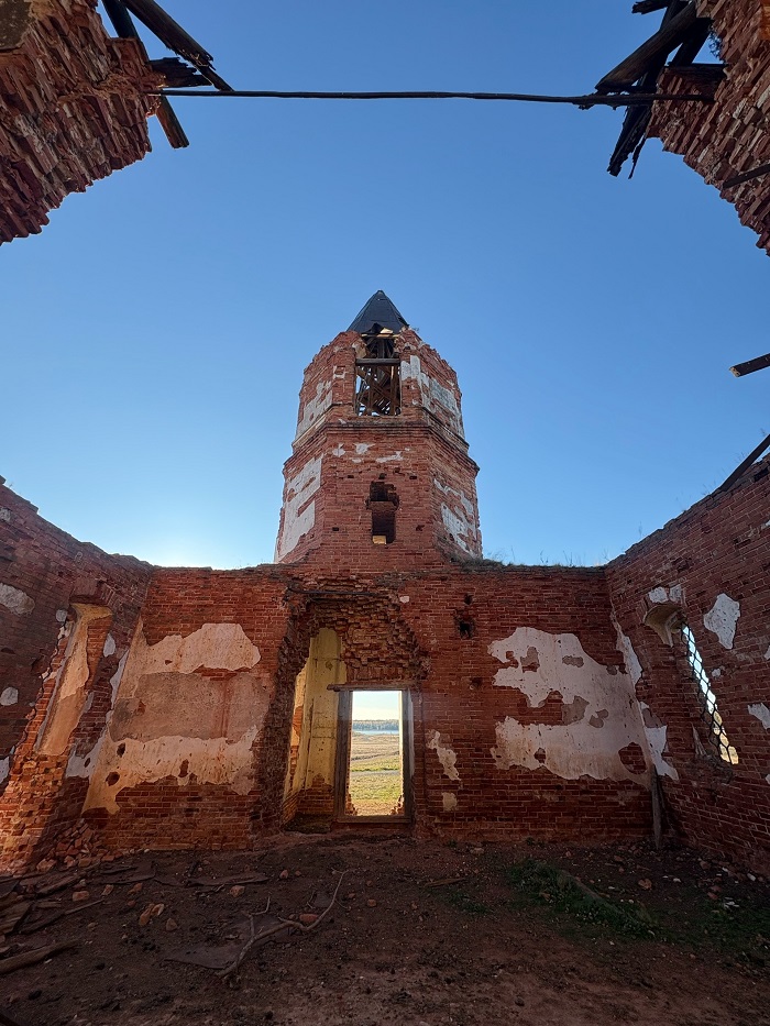 Эту каменную церковь заложили в 1860 году на месте чудесной находки- иконы. Когда-то в ней звучали молитвы святому Николаю Чудотворцу… Сейчас от былого величия мало что осталось, храм находится в плачевном состоянии, но история и атмосфера тут ощущаются очень сильно. И красота, конечно, невероятная! Почему не восстановили вовремя такой объект- не понятно…