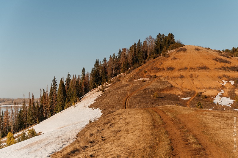 С гор хорошо просматриваются город, окрестные леса и речные пейзажи. Место удобно тем, что до него из Чайковского можно легко добраться без специального снаряжения.