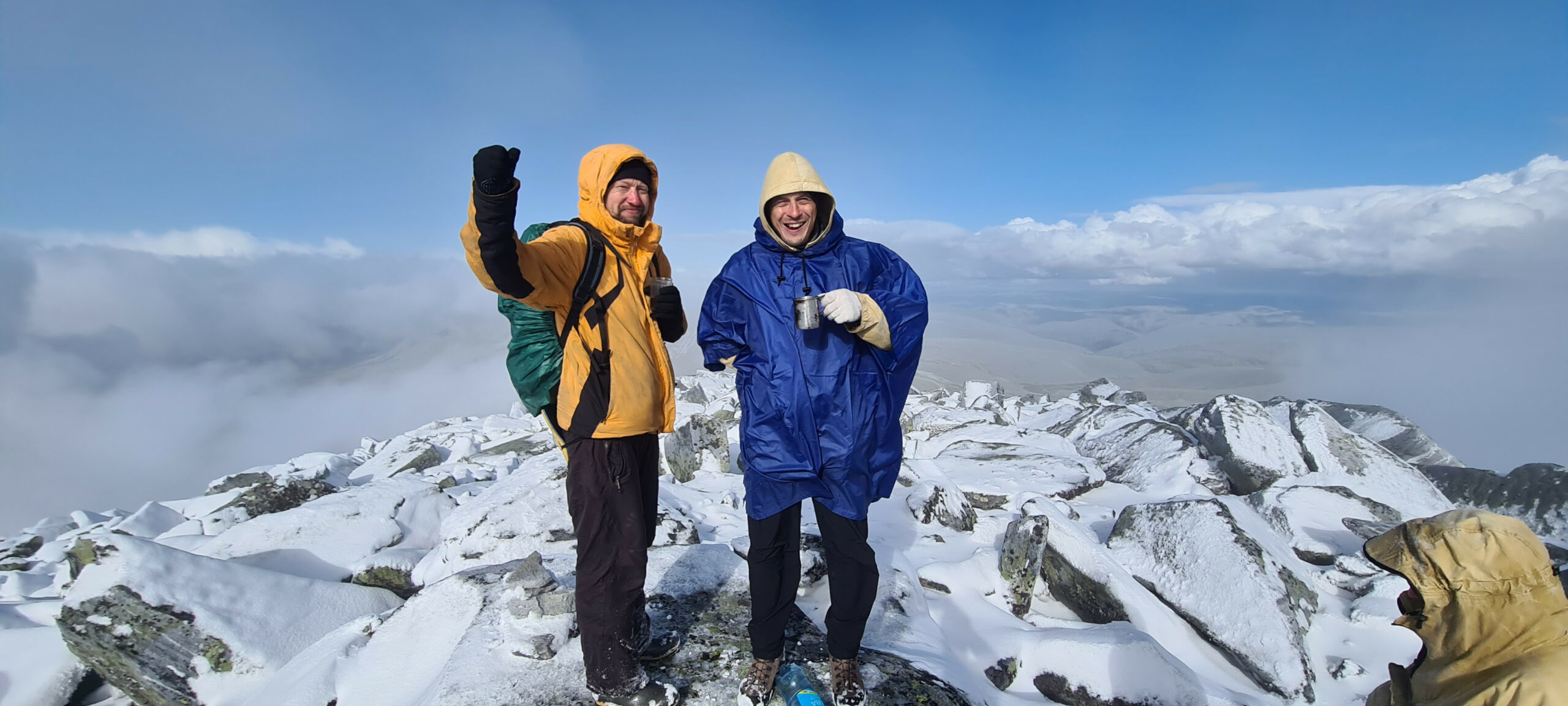 Ночью Ярослав испытал легкое недомогание. Утром к нему подключился Никита, так что остались на дневку после тяжелого перехода. С ночи опустился плотный туман, в котором метров через 30 даже огня фонаря не видно. Поэтому в туалет ходили по двое. Иначе можно запросто блудануть и пропасть, как тот мальчик в 2015 году… Которого, к слову, так и не нашли…