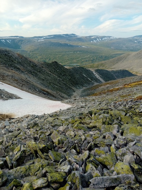 На спуске Ярослав наступил на живой камень и немного оступился. Без травм, но ноги затряслись. Вообще, на Приполярке на порядок больше живого курума, чем во всех остальных местах Урала. И свежих осыпей тоже больше…