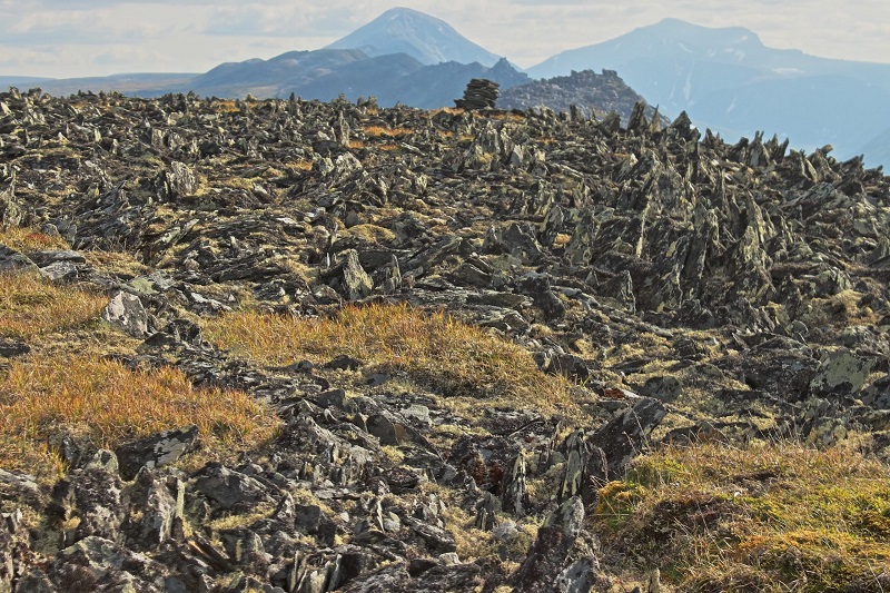 Стланик стал заметно выше, почти по пояс местами. Идти стало совсем неудобно. Даже попробовали подняться на хребет и пройти по нему, но уклон оказался слишком крут и с рюкзаками это было чересчур. Попробовали траверсом пройти, но живой курум и глубокие расщелины сказали нет. В итоге, долго блуждали, обходили и поднимались, оставляя последние силы.