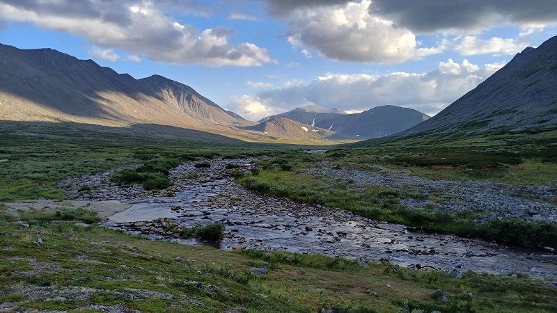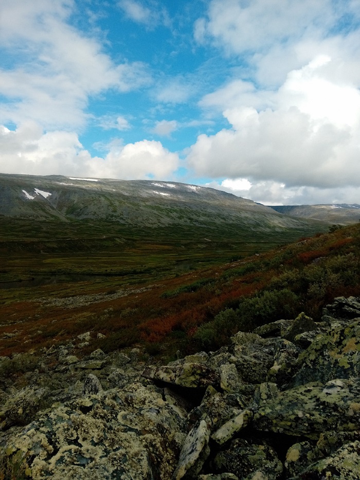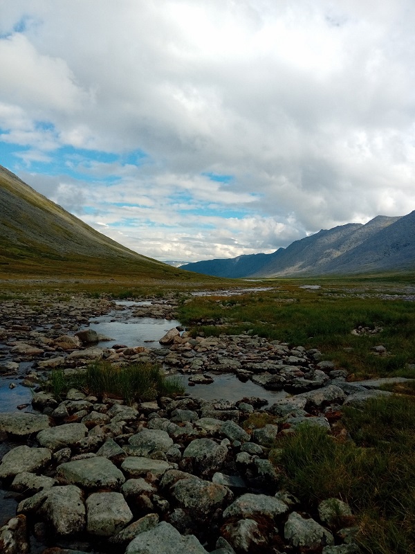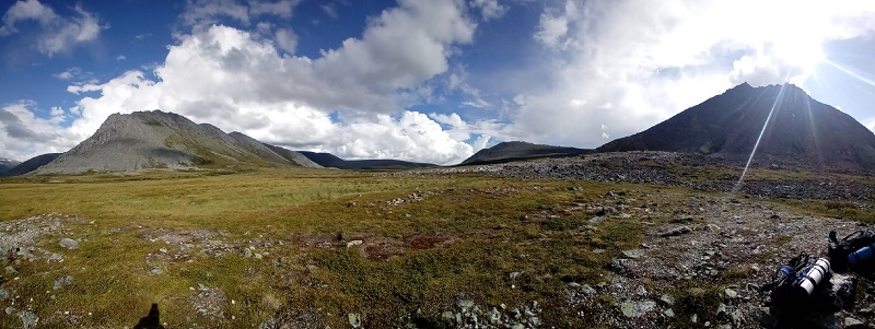 Завтрак, сборы, попрощались с разведчиками БУТа и вышли. Впереди увлекательный день — 20+ км пути, 2 перевала, набор высоты что-то около 600 м и сброс еще 300, курум и попытка обогнать погоду. Испытание? Естественно! Подвиг? Несомненно, да!