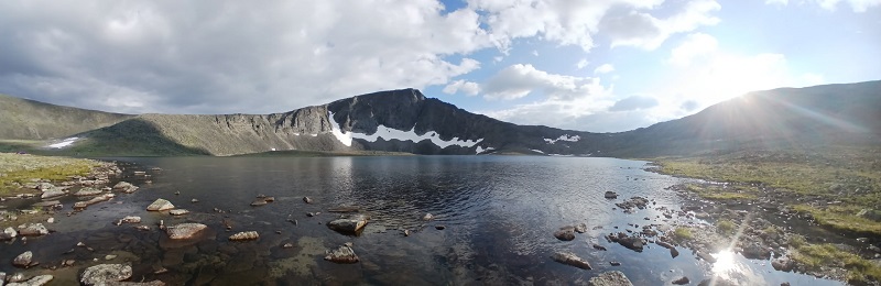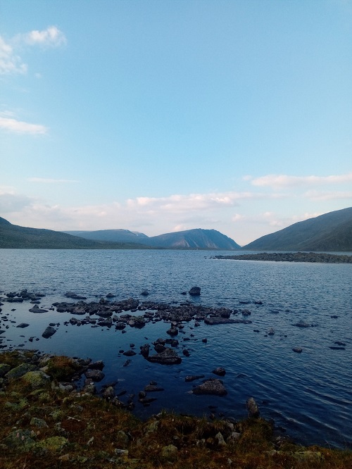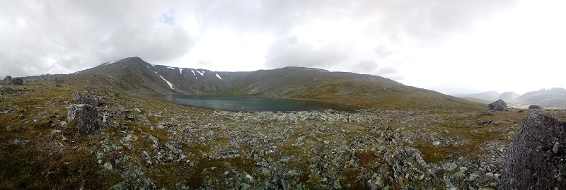 В итоге, в радиалку вышли вчетвером. Еще вчера, с Народной, увидел седловину на хребте, разделяющем наше озеро и тесную долину под Карпинским. Широкая, пологая и удобная для подъема, она показалась оптимальна для перевала и рывка к подножию. Потом останется пройти перевал Голубые озера и уйти на восточную сторону горы, откуда и совершить восхождение. На все про все, примерно, 12 часов.