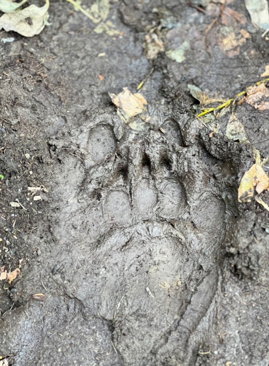 Приключения начались почти сразу. Через 5 км обнаружили, что этой тропой пользуется еще кое-кто, кроме нас и оленеводов. Медведица с медвежонком. Судя по следам, с одним. Появился повод начать усиленно осматривать местные пейзажи, свистеть от восхищения и восторга… Так до развилки и дошли. Без происшествий.