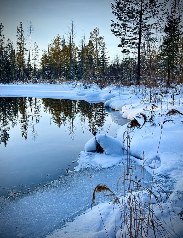 Зимой тропу от города до озера Теплое прокладывают путешественники, накатывают снегоходы, обычно есть хорошая лыжня.