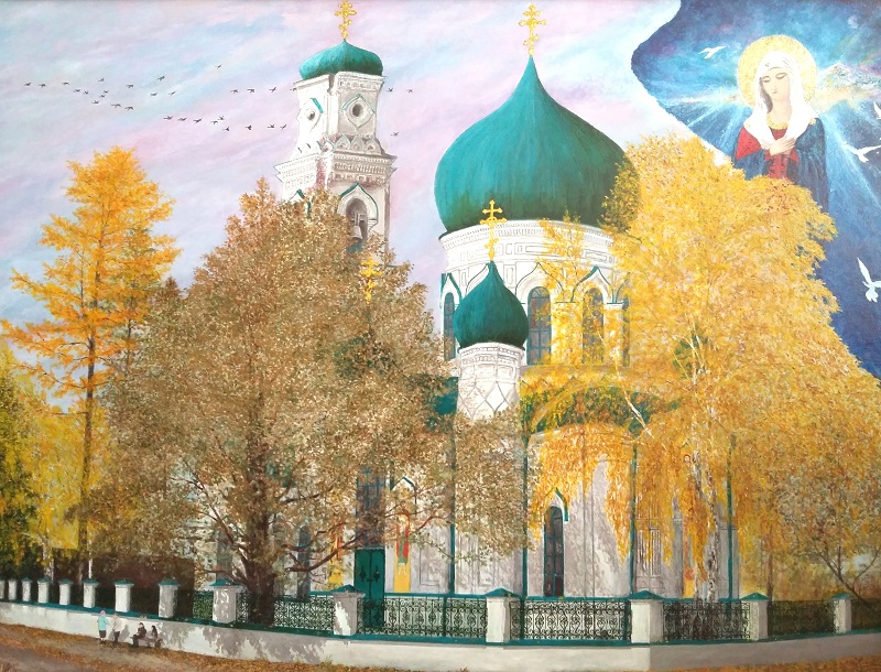 Церковь Михаила Архангела. Картину написал художник-любитель из Кушвы Юлий Болиславович Зубрицкий. Он с детства рисовал картины и все свободное время отдал написанию картин природы.