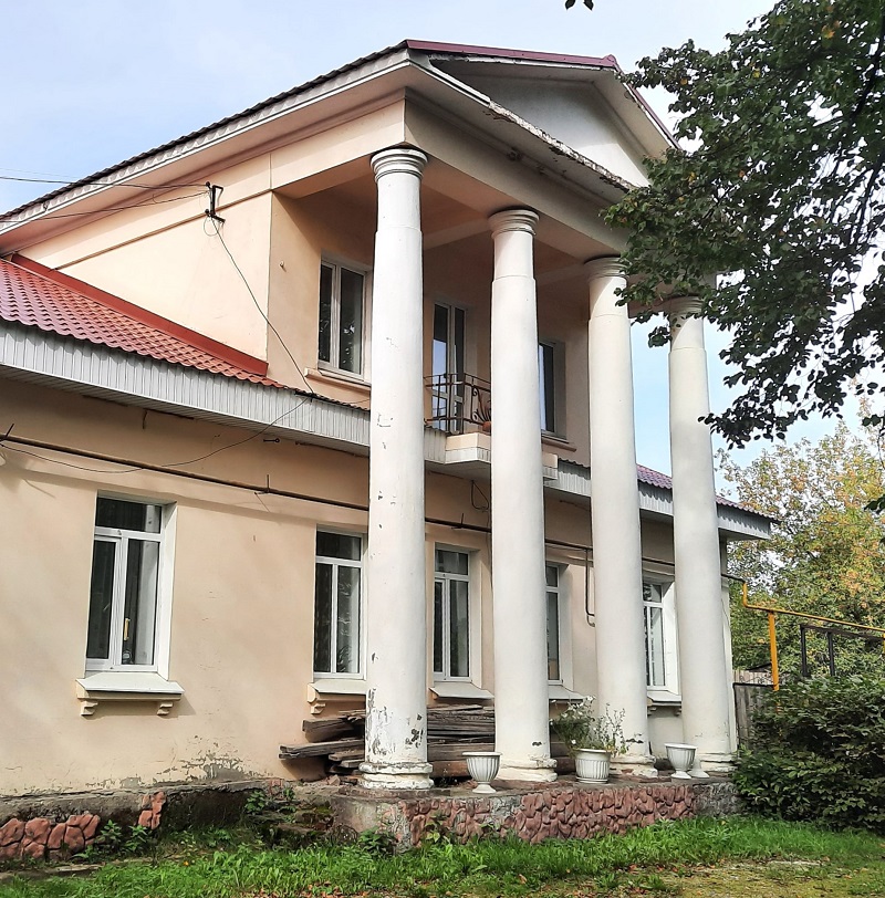 Дом по улице Магистральная 17 А построен в 1951 г., имеет четырехколонный портик.