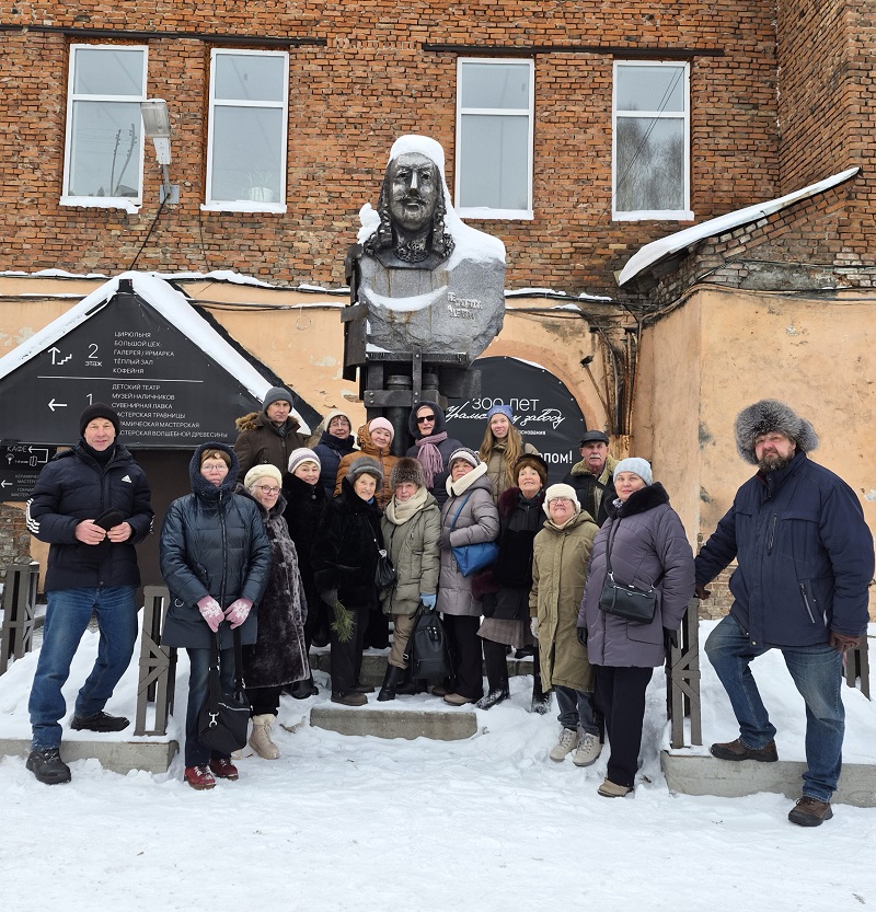 Побывали в музее наличников, в новом зале для корпоративов, на мастер-классе по изготовлению свечей, и, конечно, сфотографировались у памятника заводчику и предпринимателю Акинфию Демидову, который установлен у бывших кричных цехов Черноисточинского завода. Памятник открыли 18 октября 2025 года по проекту скульптора Александра Иванова.