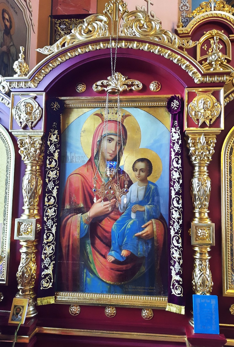 История появления этой иконы довольно интересна. На Афоне была написана Иверская икона Богородицы в 1895 г. и отправлена в поселок Черноисточинск. Когда икона прибыла в Нижний Тагил жители Черноисточинска крестным ходом пошли встречать ее. Приняв икону, люди обошли с ней вокруг поселка и эпидемия вскоре прекратилась. С того времени Иверская икона Божьей Матери находится в храме и пользуется большим почтением.