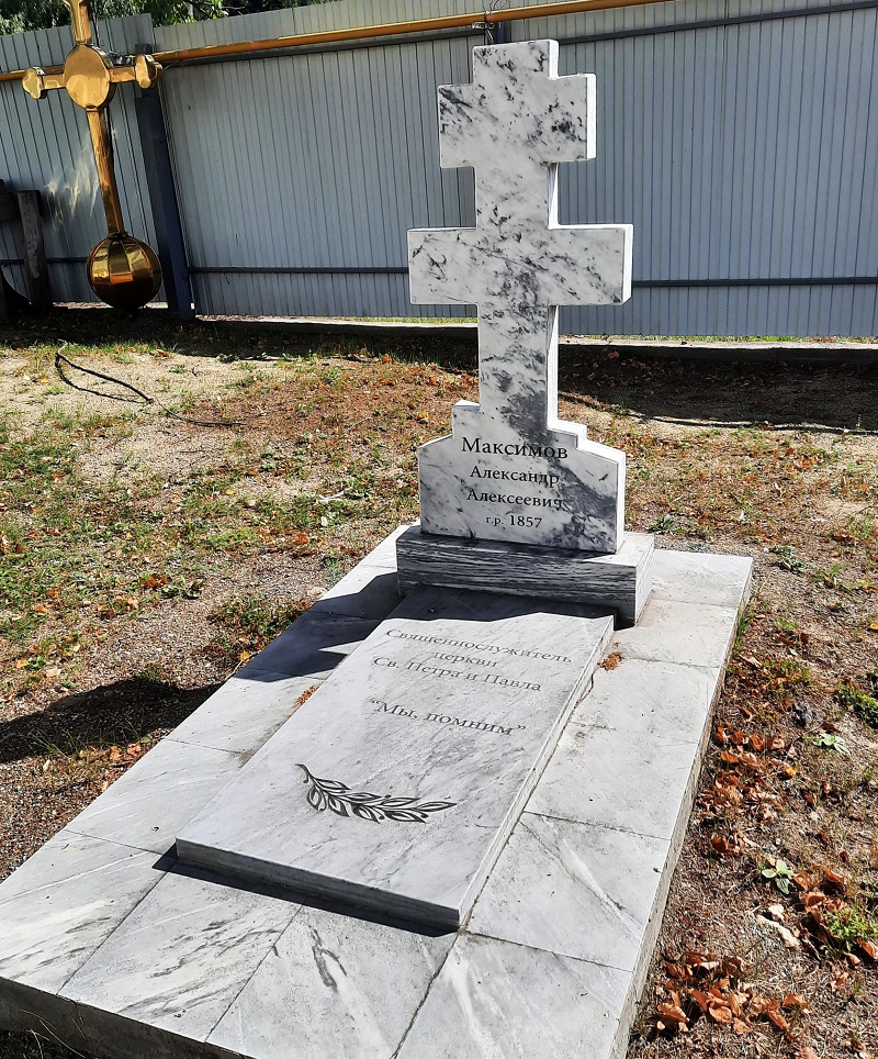 Напротив алтаря Петропавловского храма на могиле Александру Максимову установлен памятник в 2014 г. Его поставили потомки, которые живут и работают в Нижнем Тагиле. Могилу Александра Максимова венчает мраморный памятник (крест), где начертано «Максимов Александр Алексеевич, г.р. 1857 г. Священнослужитель церкви Петра и Павла. «Мы помним».