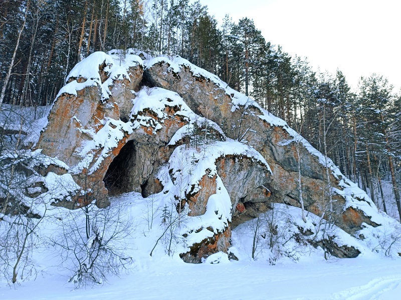Особый интерес вызывает овальное отверстие в верхней части скалы. Пеший маршрут по реке Нейве — зимой по льду или летом — по лесу — идеально подходит для однодневной вылазки из Алапаевска.