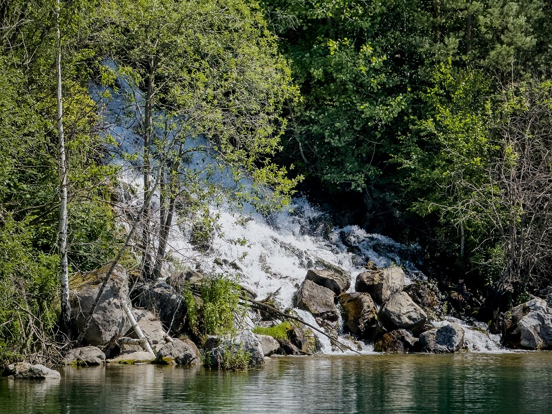 Весной, с пиком паводка в апреле–мае, высота падения потока достигает 10–15 м, а шум воды слышен издалека.