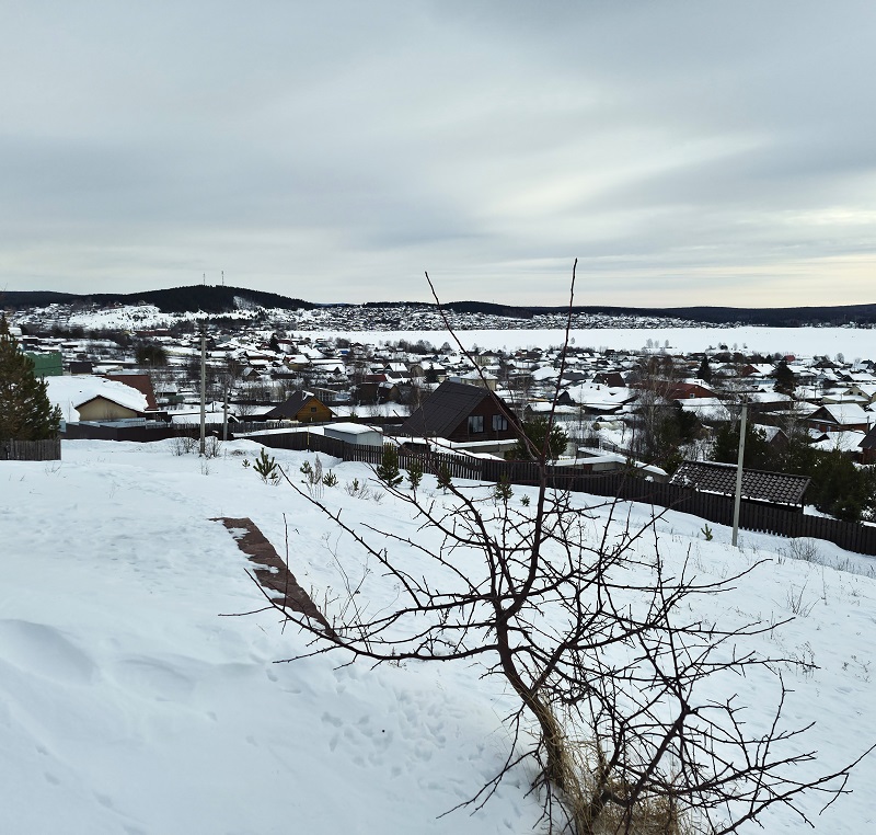Вдали виднеется Леневское водохранилище, село Николо-Павловское. Слева мыс Крутики и поселок Черноисточинск, присыпанный снегом.