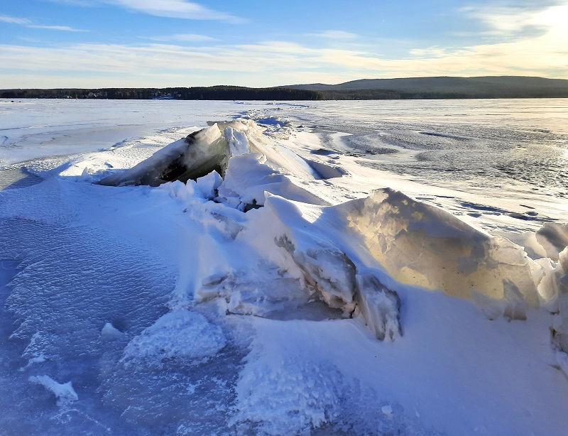 Вздыбленный лед около берега мыса Крутики. По мере нарастания льда лед трескается и образуются торосы.