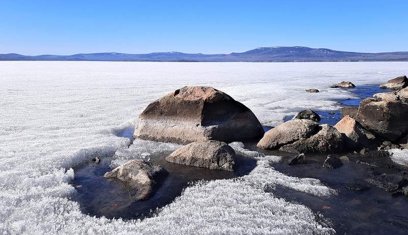 Проходит зима, и снова наступает весна. В 2026 году выпало особенно много снега. В солнечный весенний день вдали синеют Веселые горы. Постепенно становится тепло, лед на Черноисточинском пруду оттаивает и отходит от берега, освобождая береговые камни ото льда. Скоро здесь заплещутся голубые волны Черноисточинского пруда…