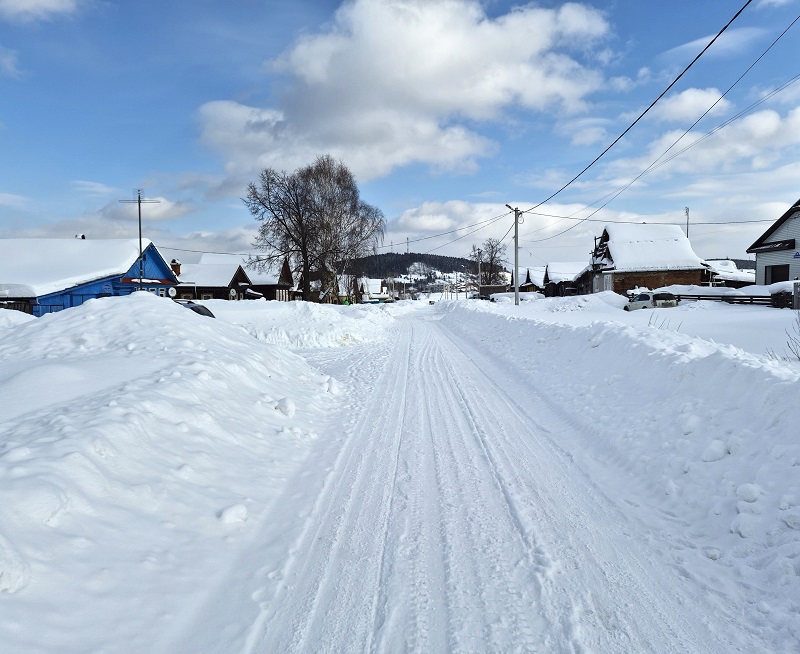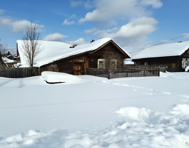 Около этого дома, мы, детворой бегали по сугробам, катались с горок. А спустя 50 – 60 лет опустели дома, все разъехались по городам. В этом году прилично выпало снега.