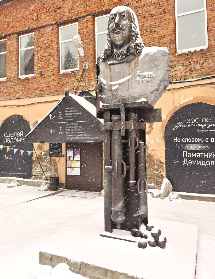 Памятник Акинфию Демидову установлен осенью 2025 г. по проекту тагильского скульптора Александра Иванова.