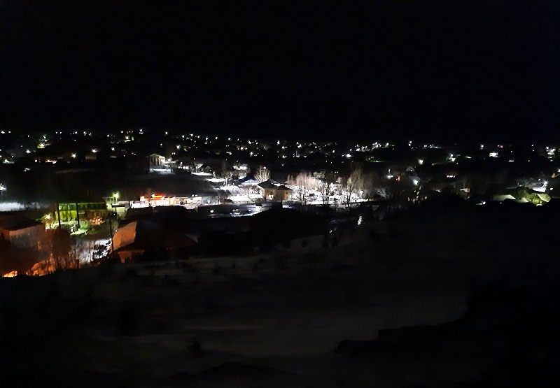 Вид с Заводской горы на ночной поселок Черноисточинск, он смотрится, как небольшой город — весь в огнях.