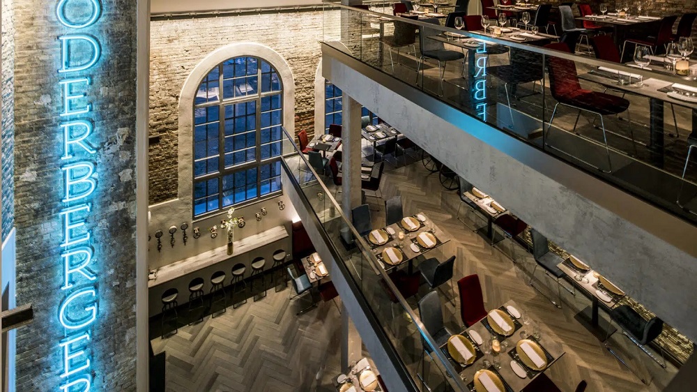 Фишки отеля: два бара (один в лобби, другой на крыше/террасе летом — с розовыми коктейлями и видом на Шпрее), ресторан Fabrics с современной европейской кухней (и знаменитым pink Döner из фуд-трака летом), терраса у воды (летом hotspot для locals), фитнес, сауна, парковка, бесплатный Wi-Fi. Здесь регулярно проходят концерты, выставки, модные показы, вечеринки и события на сцене.