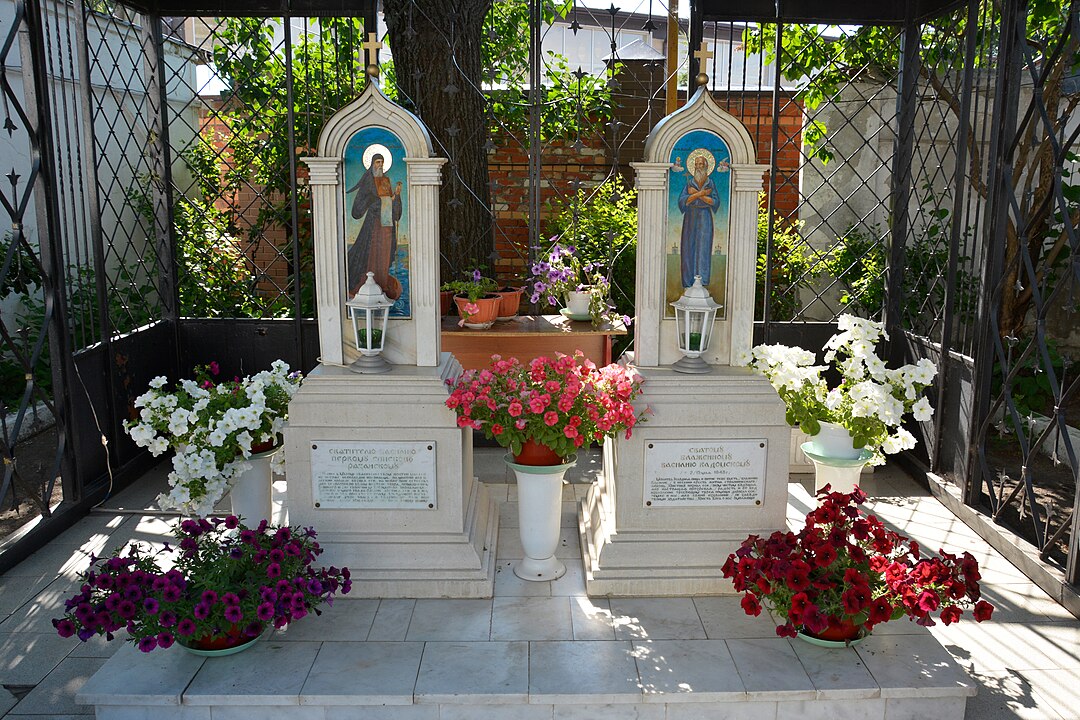 На церковной территории находится место захоронения Василия Рязанского, памятник блаженному Василию Кадомскому, а также множество других святынь для верующих.