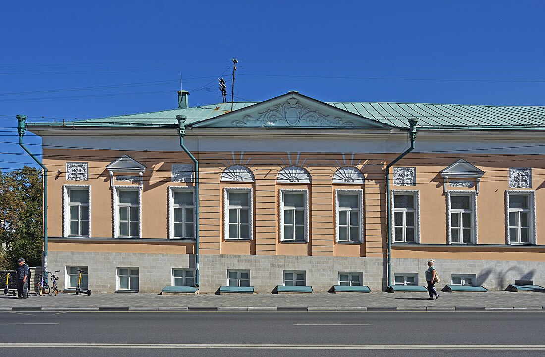 Само здание относится к городской усадебной архитектуре XIX века: невысокое, камерное, с характерными деталями того времени. Вокруг него легко представить ту самую провинциальную Рязань, которую видел и описывал Салтыков-Щедрин.
