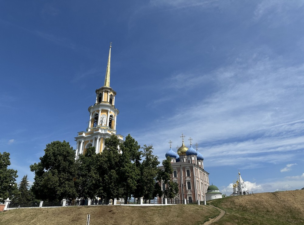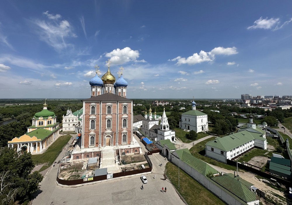 Рязанский кремль — главный исторический ансамбль города и логичная точка начала знакомства с Рязанью. Он расположен на высоком холме между реками Трубеж и Лыбедь и хорошо читается как отдельное, почти замкнутое пространство внутри города. Сегодня кремль — это музей-заповедник под открытым небом, где сочетаются храмы, гражданская архитектура и панорамные виды на окрестности.