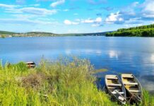 Опустив взгляд вниз, мы увидим юрты, прямо под муралом. Это настоящая этнодеревня — аутентичный уголок Башкортостана. Здесь можно приобрести сувениры местных мастеров, примерить национальный башкирский костюм и попробовать традиционные угощения.