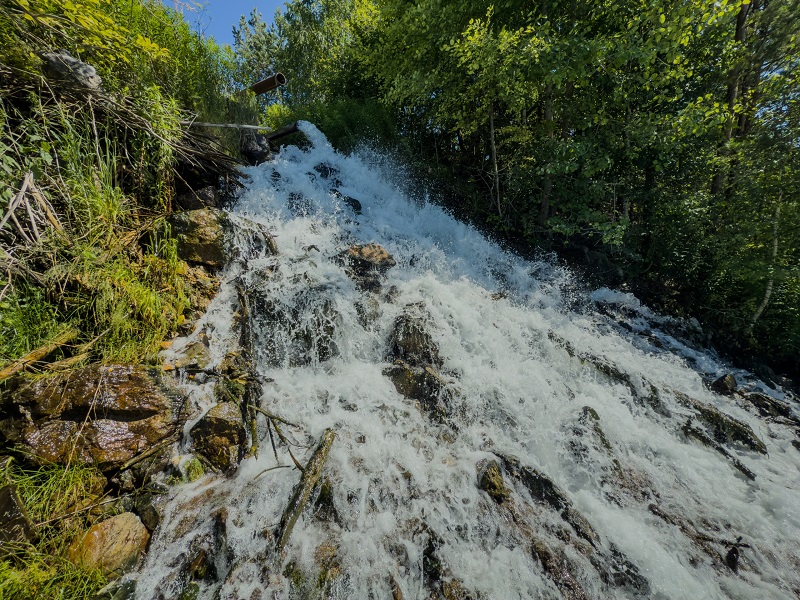 Весной, с пиком паводка в апреле–мае, высота падения потока достигает 10–15 м, а шум воды слышен издалека.