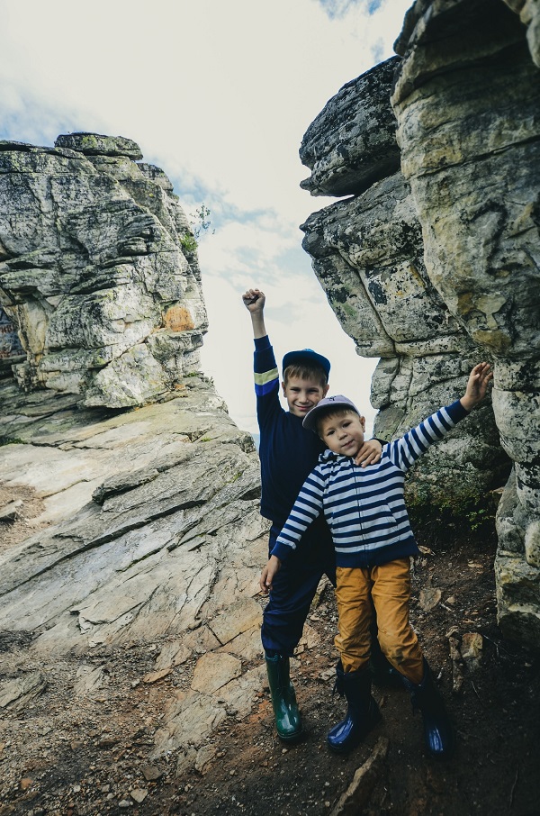 Дети гораздо выносливее, чем может показаться в городе. Главное, поддержка от родителей. Много разговаривать, ни в коем случае не ругать, и, главное, позволять детям быть детьми: залезать в грязь, поднимать и таскать с собой всевозможные камни и палки, помогать залезать на камни и скалы.