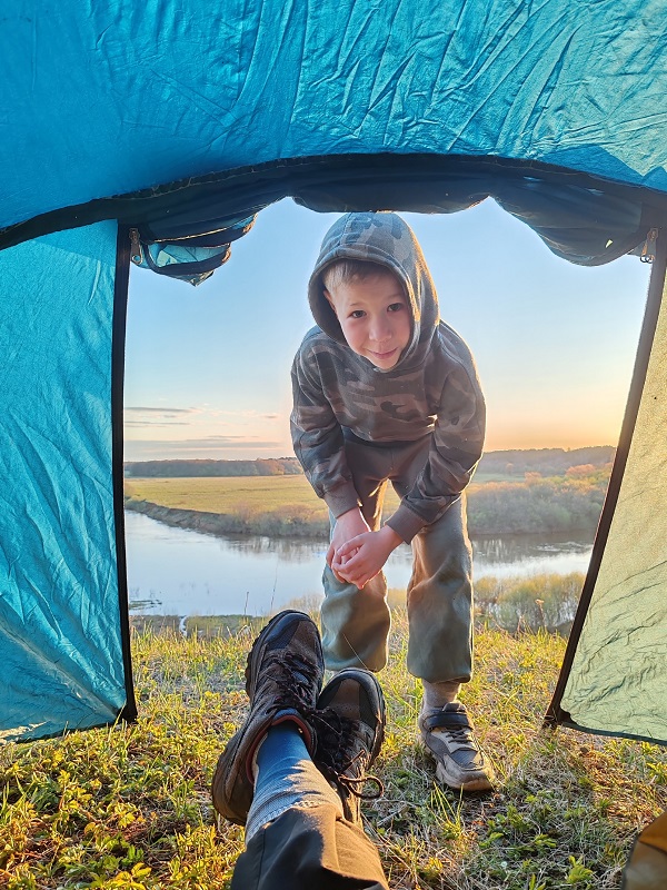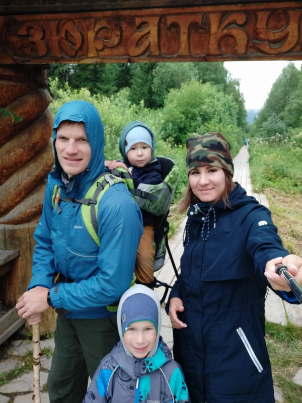 Со старшим сыном впервые были в походе, когда ему 1 год 5 месяцев. Муж нёс все вещи, я несла ребёнка. Когда появился Матвей, стало сложнее — двоих уже не унесёшь, нужно было ждать, когда дети смогут идти сами.