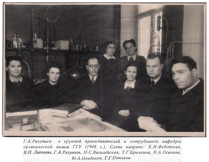 - 1947 г. Зав. лабораторией органической химии в Научно-исследовательском институте химии при ГГУ им. Н.И. Лобачевского.