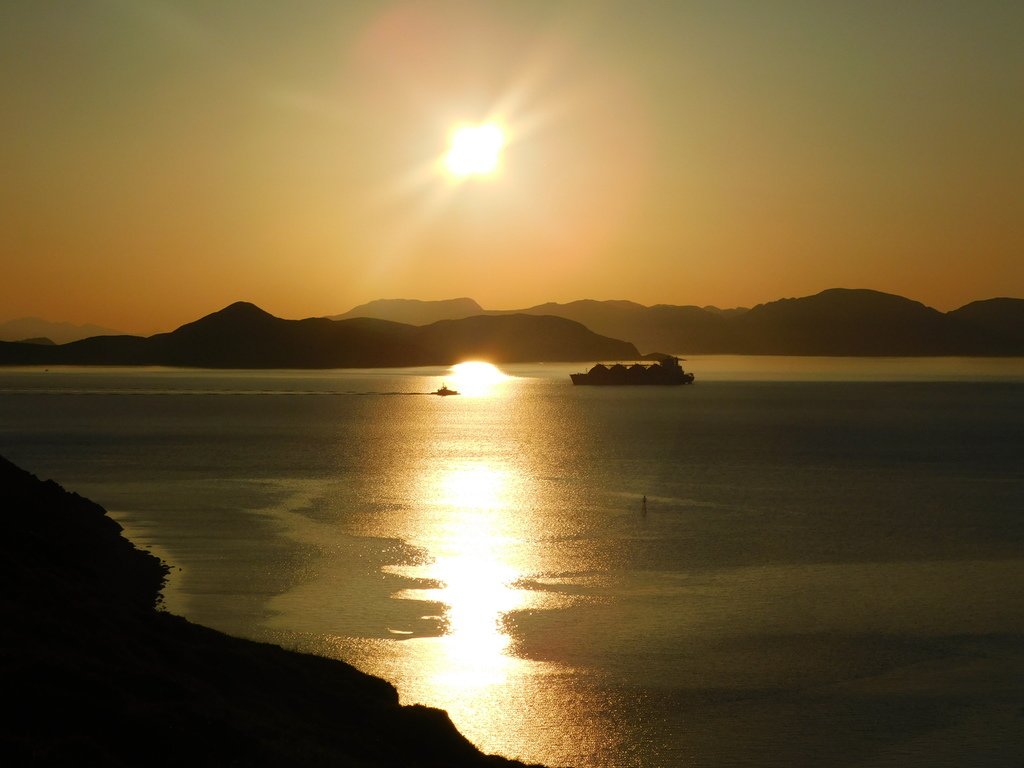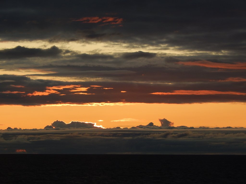 И было поэту ночью диво дивное — реальное доказательство того что Бог есть, он любит нас и желает чтобы мы были счастливы. Да, северное сияние. Всю ночь в небе над нашим кораблем разыгрывалось неповторимое представление – небосвод со звездами размером с кулак обильно освещался постоянно меняющимся переливающимся из малинового в зелёное и обратно, принимающим самые причудливые очертания свечением – то это крылья ангела, то лепестки друзы, то стремительно приближающаяся к замершим муравьями на палубе путникам грозная длань, которая всё ближе, ближе, и ААААААААААА!!!! И звёзды, звёзды повсюду, близкие настолько, что поэт –таки не удержался – некоторые из звёзд снимал с неба и с хулиганскими целями бросал в толпу восхищенных зрителей. И крики «ай-ай! Бетельгейзе за шиворот закатилась!» были сладкой музыкой…