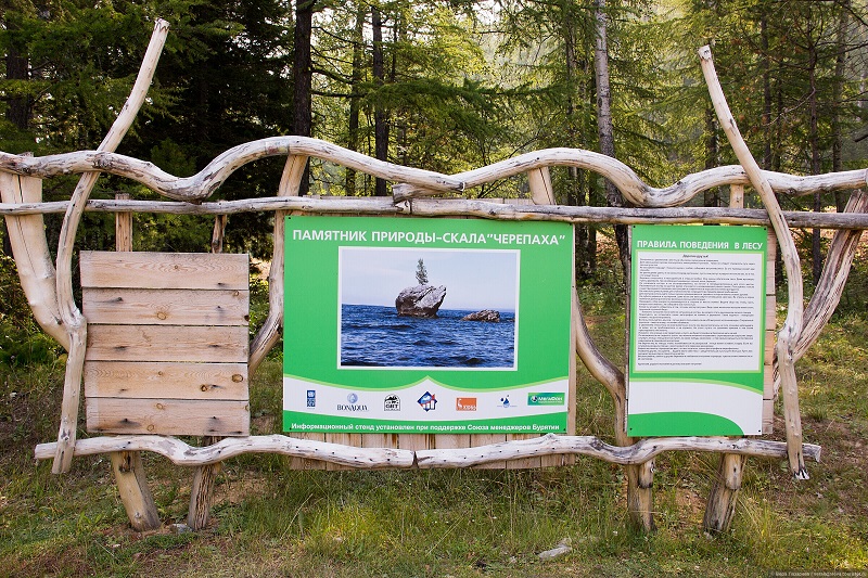 Недалеко от Черепахи есть ещё одна скала, возвышающаяся над водой на пару метров — её прозвали Львёнком. До обеих скальных образований можно дойти по дну Байкала или подплыть.