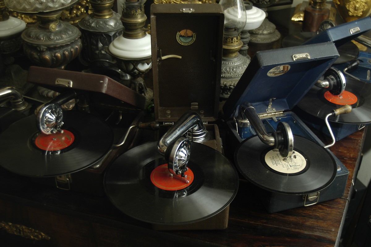 - старинные музыкальные инструменты и механизмы — граммофоны, патефоны, фисгармонии, музыкальные шкатулки и шарманки;