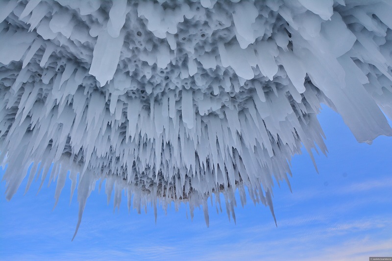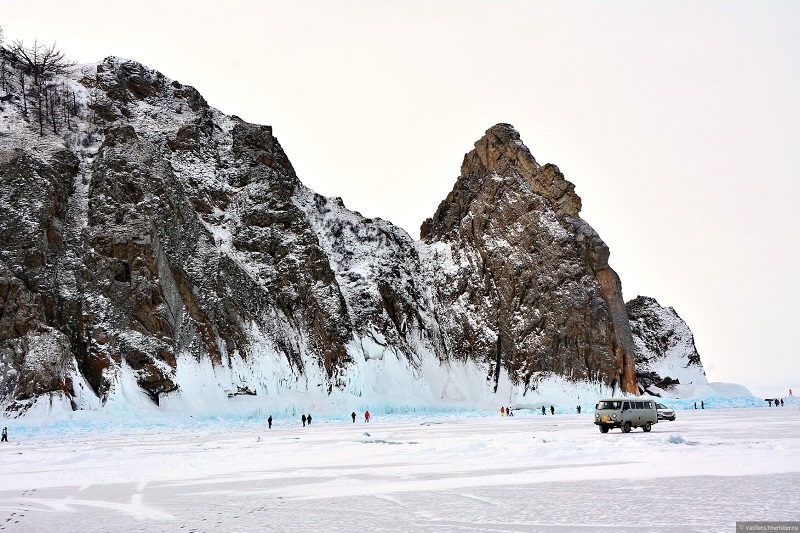 Зимой мыс открывается с новой стороны. У его подножия вырастают впечатляющие нагромождения прозрачных голубых льдин. Когда байкальский лёд сжимается — а для озера это обычное явление — из него вытесняется воздух, и толща приобретает насыщенный голубой оттенок, создавая по-настоящему фантастический пейзаж.