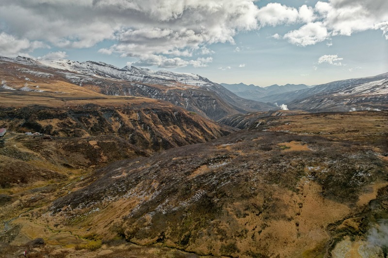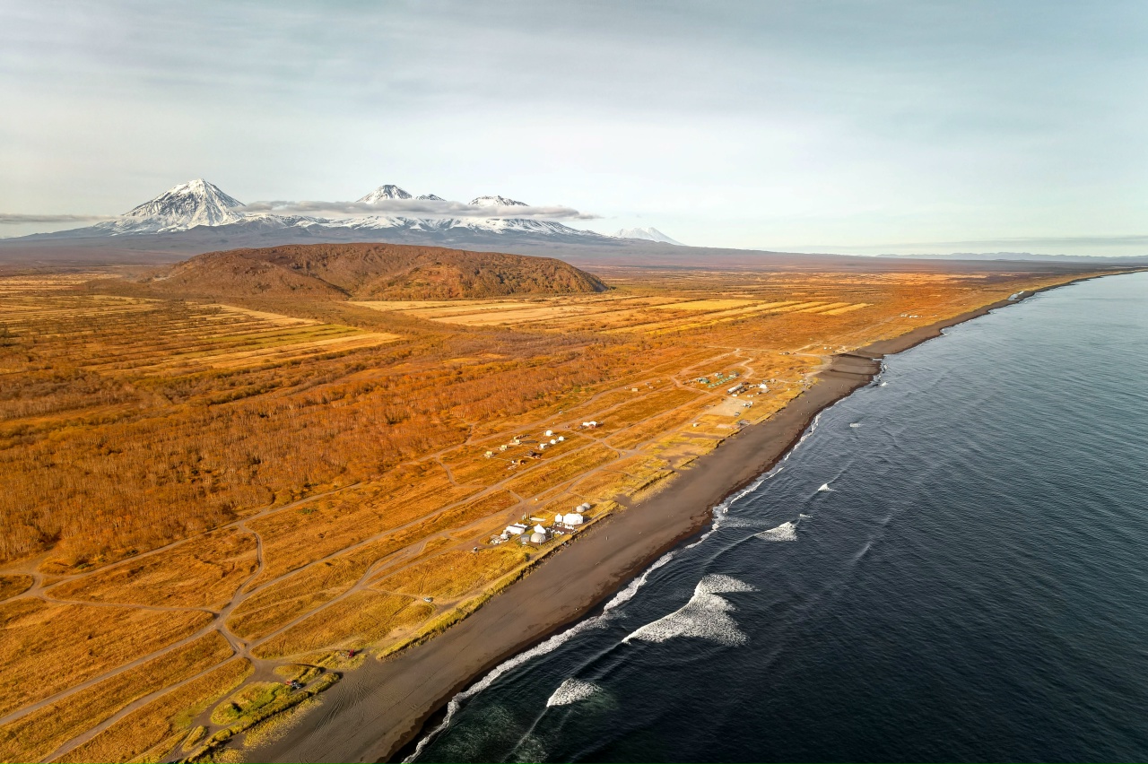 Перевалы, тундра, шлаковые поля и верхушки гор красиво присыпаны снегом. Случилось то самое, мимолётное межсезонье. Как градиент осени к зиме. Как переход света в тени. Как первые лучи солнца из-за горизонта. Как последние его лучи, утопающие в барашках волн. И это межсезонье удалось застать на Камчатке. Чудесно!