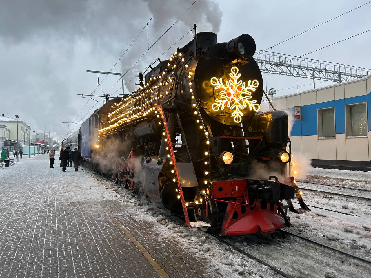 Представьте себе: искрится снег, в воздухе витает аромат мандаринов и праздничных угощений, а новогодний ретропоезд на паровой тяге уносит вас в сказку!